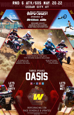 WORCS - Round 6 ATV / SXS at Three Peaks Oasis Event Park May 20th - 22nd, 2022 Cedar City, UT 5/20 - 5/22 Weekend Race Schedule here Friday Practice…