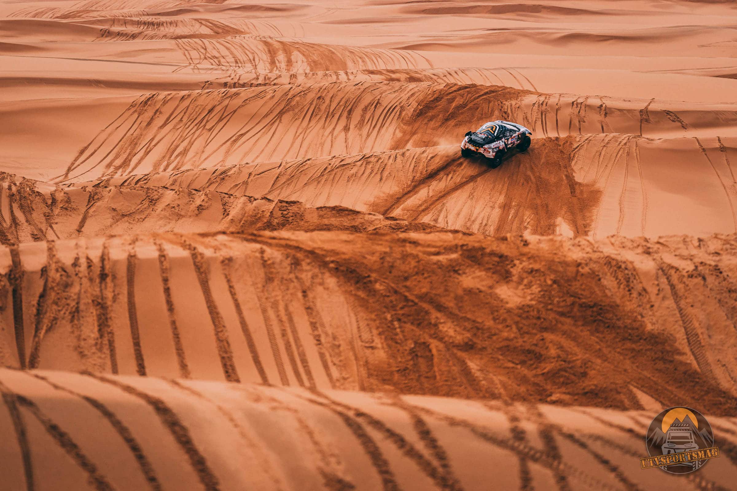 De Mevius finished in twelfth place today, having some adventure on the way. “We started the stage with a roll in the dunes,” he said. “It was quite a scary moment, but some members of the public helped us get back on the way, so thank you to them. We had to change a wheel because we’d damaged a tire. We lost quite a bit of time. It was quite difficult to find our rhythm on the dunes. It was very different from the beginning of the race. Now it’ll be like this for some days.” He still keeps the throne, but Austin Jones posted a better time today, finishing sixth and narrowing the gap from 12 to seven minutes. With three days ahead, there was no room for mistakes in this battle.