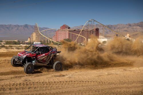 The Legacy Racing VT Construction Battleground Race took place in the shadow of the rollercoaster at the Buffalo Bills Hotel, and Casino. They traversed a twisty, sandy course full of jumps making it a playground for the drivers!