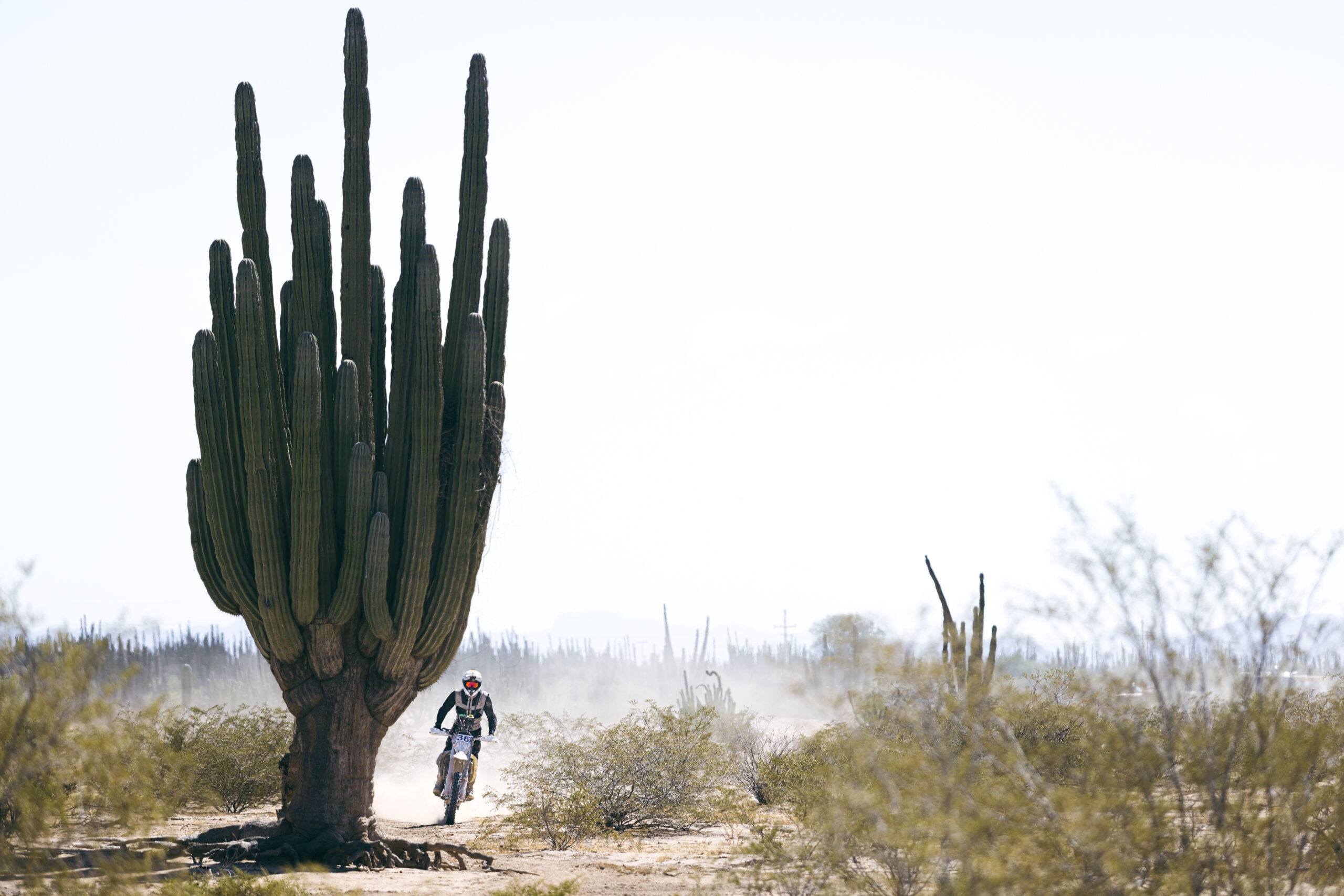 SS1 was many things, but above all else, it was hot. Grueling in fact. The sort of heat that engulfs everything and holds it in place. A momentary breeze offered temporary reprieve for bystanders waiting, relatively motionless, under an overbearing sun. Teasing the skin as it brushed past. In much of the stage, vistas were wide, the light was bright, and the shade was nowhere to be found. Birds called to each other from distant branches in short, staccato bursts proving that life is possible in this desert. But only for some. Most of which lay dormant during the daylight hours in sand lairs and stone dens encircled by ancient saguaro, wiry bushes and brambles. A natural security gate keeping out unwanted guests. Visitors not so unlike these unwary rally racers. Pilots with eyes set on only two places: the roadbook and the route. Minor details going unnoticed if not explicitly marked in their notes. A product of necessity, which occasionally sends a rider (more) off-road to tackle a similarly unsuspecting cacti.