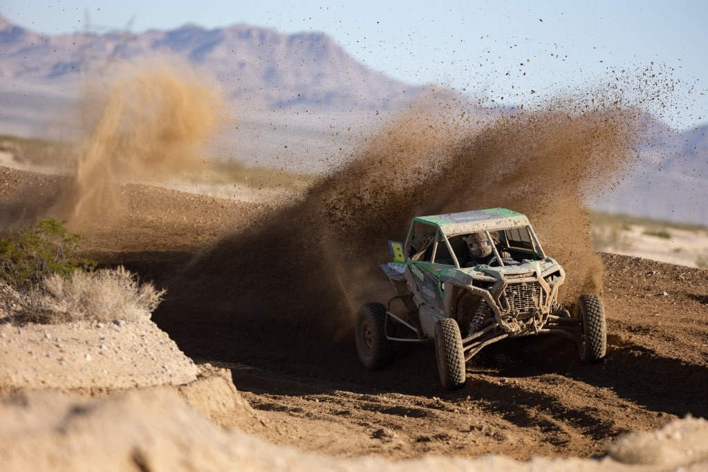 After the short course concluded, the racers would be greeted with a 5.7-mile-long course spread out behind the parking lot of Buffalo Bills. Sweeper Steve and the rest of the WORCS dirt crew put together a great track to challenge each of the racers. Recently crowned champion Judge wanted to end his season like how it began but this weekend with two victories, and that’s precisely what he did. He would grab the holeshot as he put those Elka Shocks to work, gliding his way to success and grabbing the overall with a 1-1 on the weekend to cap an almost perfect season. Saxton and Cox, who would start in the second row, put their heads down early as they set out for the leaders on corrected time, with Saxton posting the fastest lap time of any racer in the desert course with a lap time of just under 9 minutes. Cox would finish in 3rd place as he finds himself on the podium for both Primm rounds.
