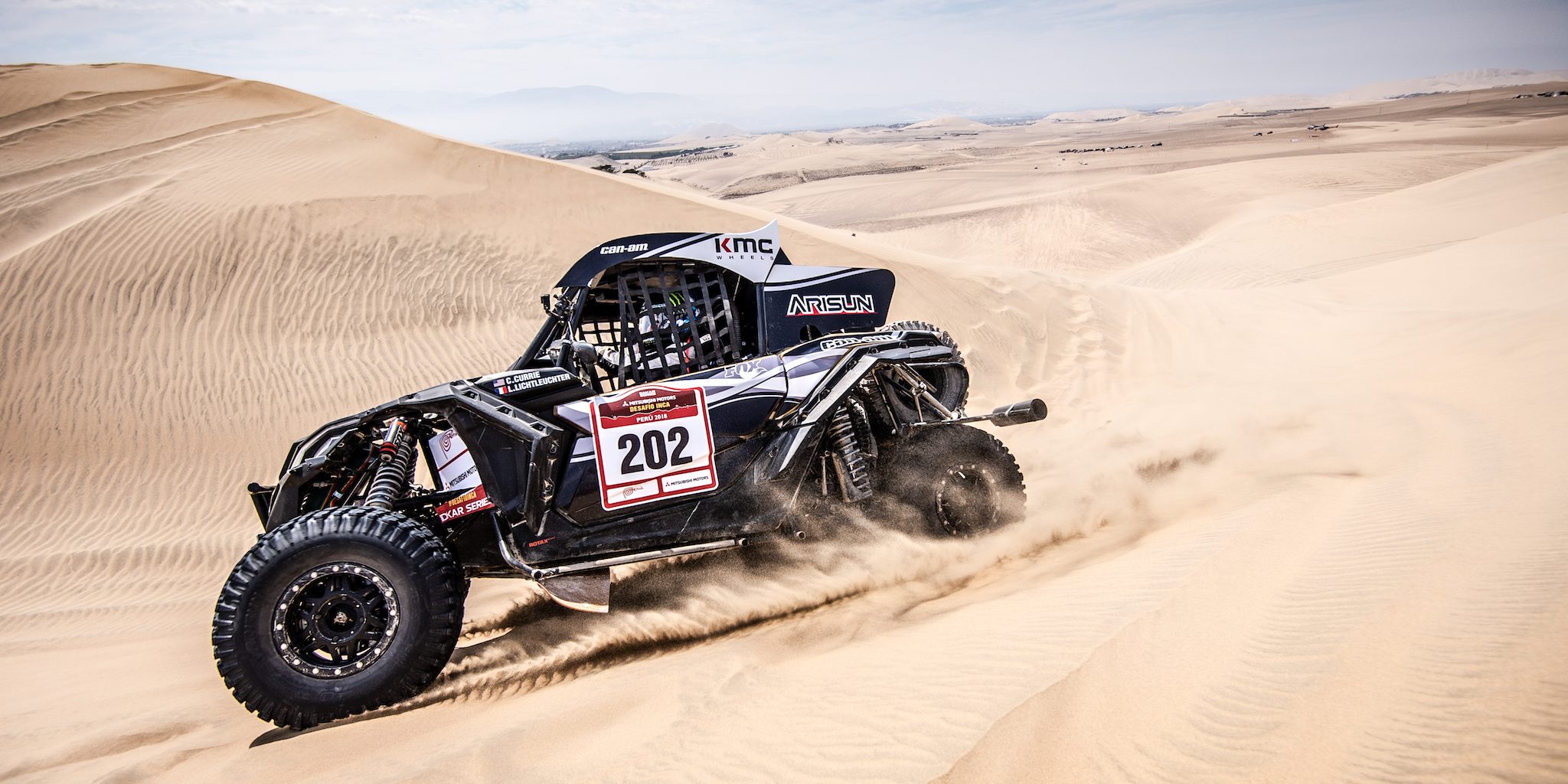 Casey Currie, an American off-road racer and Monster Energy athlete, recently join Team South Racing / Can-Am to compete and win the Mitsubishi Motors Desafio Inca Challenge (Dakar Series) desert race Sept. 14-16 in Peru, South America. Currie, and co-pilot Laurent Lichtleuchter, drove the No. 202 Can-Am Maverick X3 Turbo R side-by-side vehicle — sponsored and built by South Racing and Scott Abraham — to a class victory AND the event overall, edging all categories, including cars and trucks.