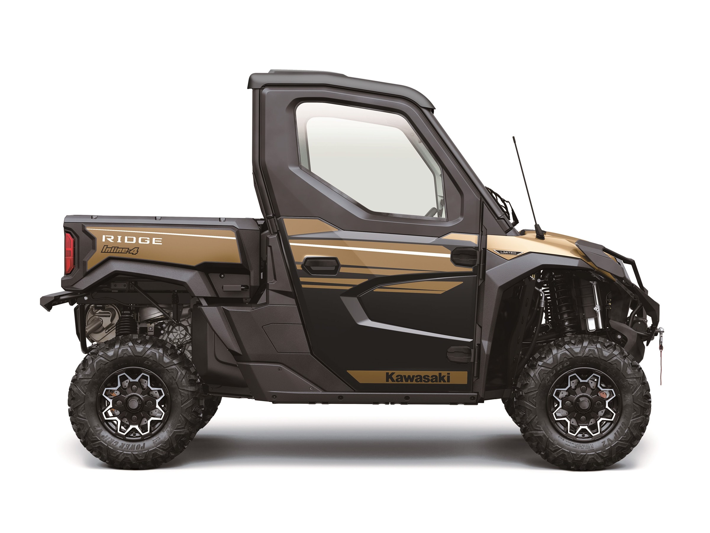 The all-new Kawasaki RIDGE® side x side models blend utility and sport recreational use into one versatile side x side vehicle. A tough build, high cargo capacity and industry-first 999cc in-line four-cylinder engine make the RIDGE® line-up work-ready, while their long-travel suspension, substantial ground clearance and comfortable cab enhance the sport recreational capabilities. With several model variations from which to choose, including models with standard enclosed cabs and HVAC, the RIDGE® line-up accommodates a wide range of work and recreation conditions.