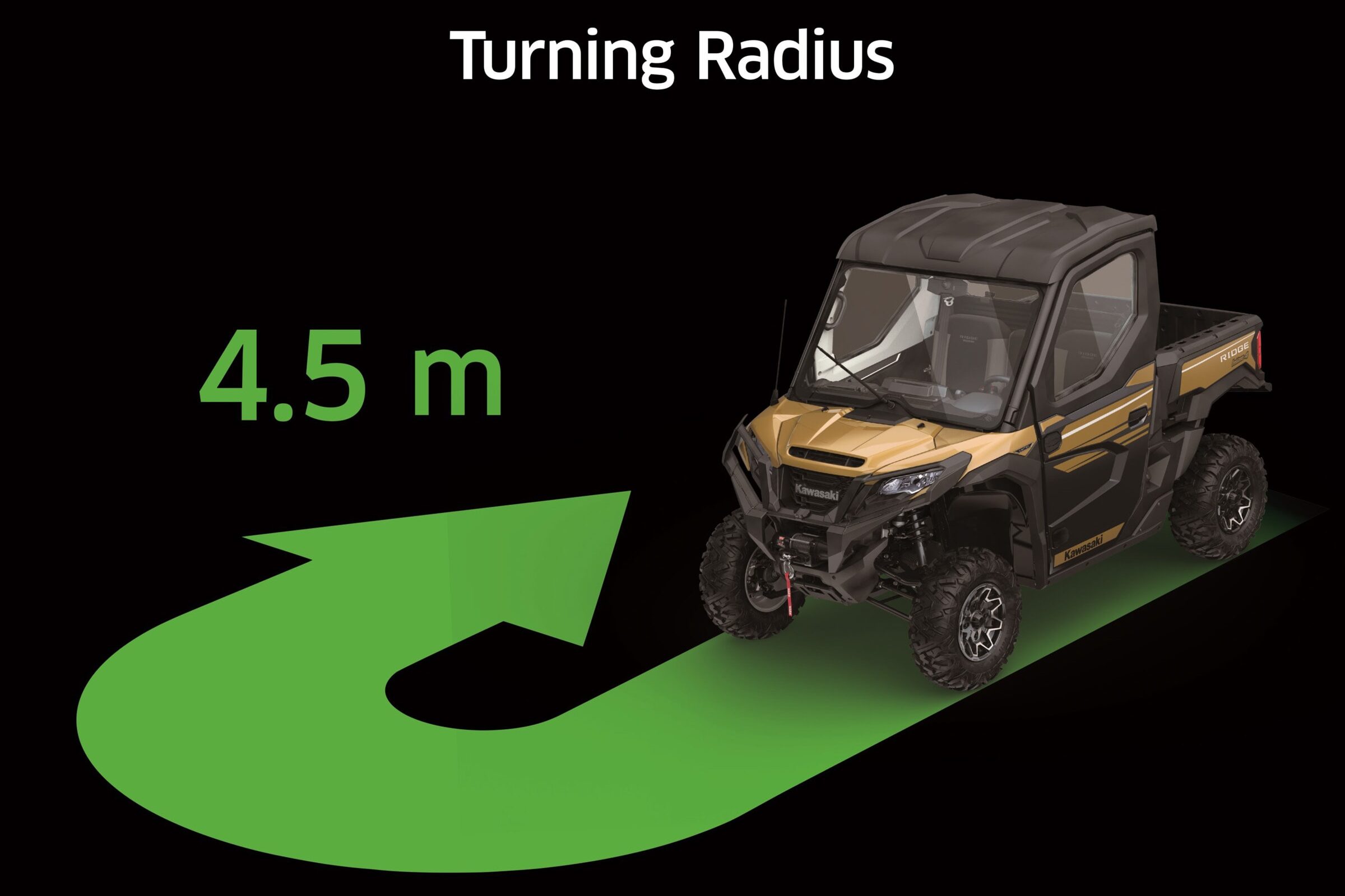 Every RIDGE model is equipped with Kawasaki’s high-grade electric power steering (EPS) system which operates most effectively at extremely slow speeds and when the vehicle is stopped. When turning the wheel, a signal is sent to the EPS Electronic Control Unit (ECU), activating assistance.