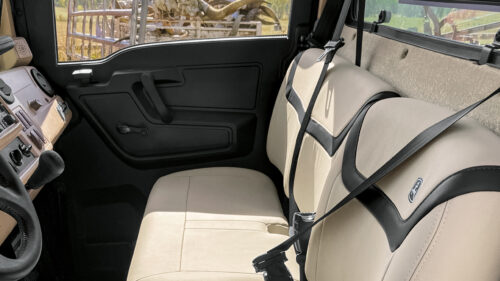 - Genuine leather seats and leather-wrapped grab handles that are easy to clean