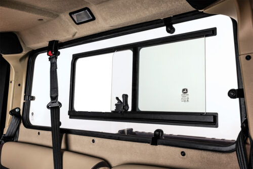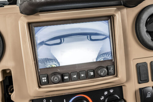 - Rear-facing camera displays image on the infotainment screen with the push of a button to provide better visibility when attaching trailers or spreading materials like seed or salt.